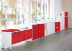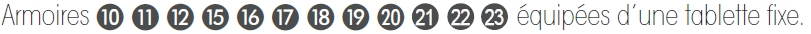 - Armoires H. 42,5 cm équipées de portes en Altuglass®. Bague de préhension ronde chromée. Pas de serrure. Armoires superposables sur les armoires H. 71 et 113,5 cm.