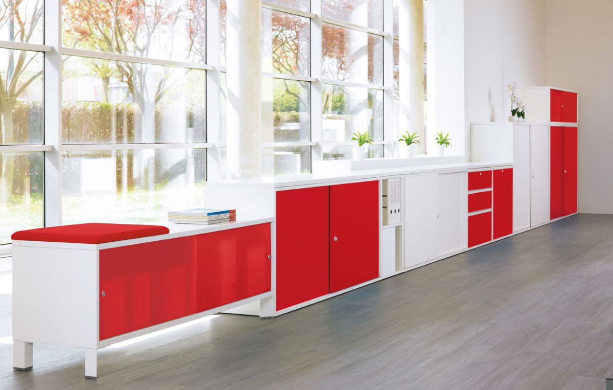 - Classeur 3 tiroirs équipé d’un tiroir pour dossiers suspendus et de 2 tiroirs de rangement. Serrure centrale.