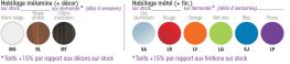 - Plateaux mélamine ép. 38 mm équipés de 2 obturateurs gris aluminium (sauf module pour *Personnes à Mobilité Réduite). Décor coordonné à celui de l’habillage pour la mélamine ou blanc neige MG pour l’habillage métallique.