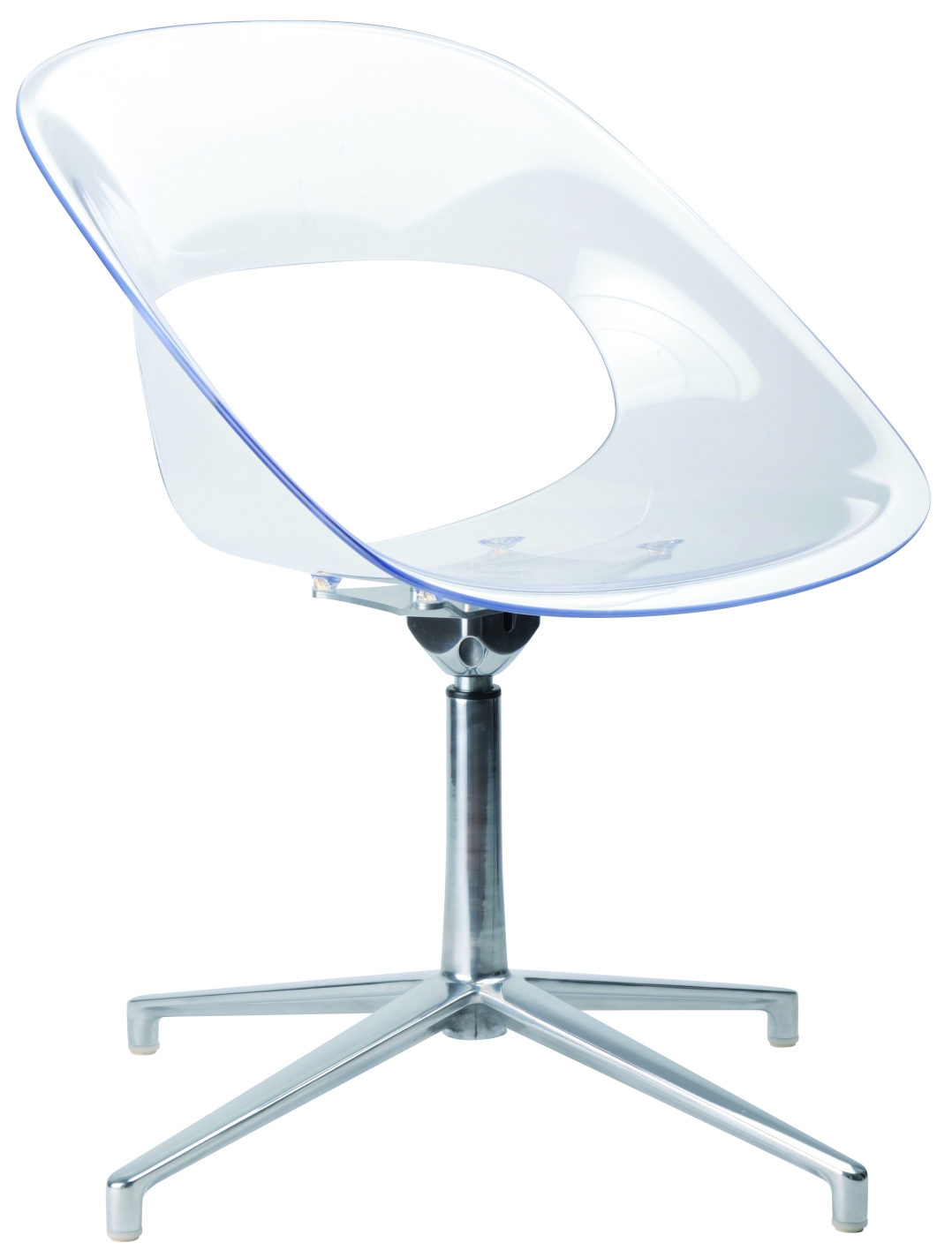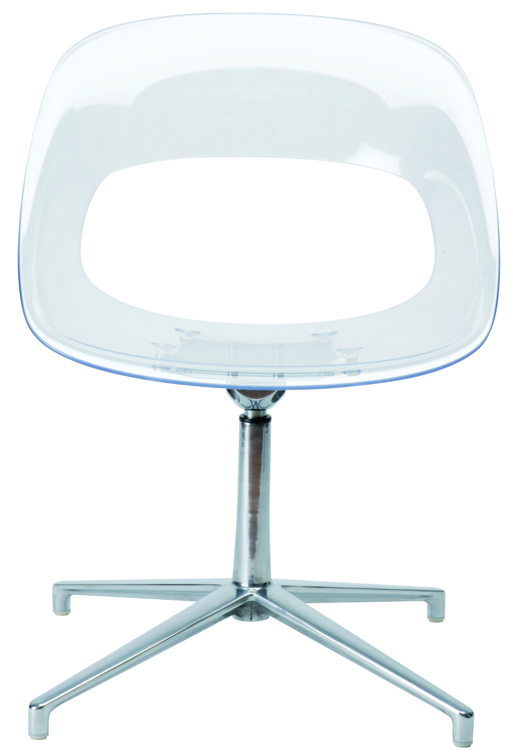 Un pied central giratoire en fonte d'alu, cela donne déjà le ton! Ce siège bien campé sur une structure raffinée incarne un nouveau standard de vos acceuils voir de vos réunions. Résolument contemporaines ces courbes ont l'avantage d'être en plus comfortables. Coloris de stock blanc opaque et transparent
