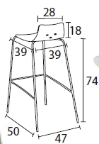 - Hauteurs d’assise : chaise : 47 cm ; tabouret 4 pieds : 74 cm ;
