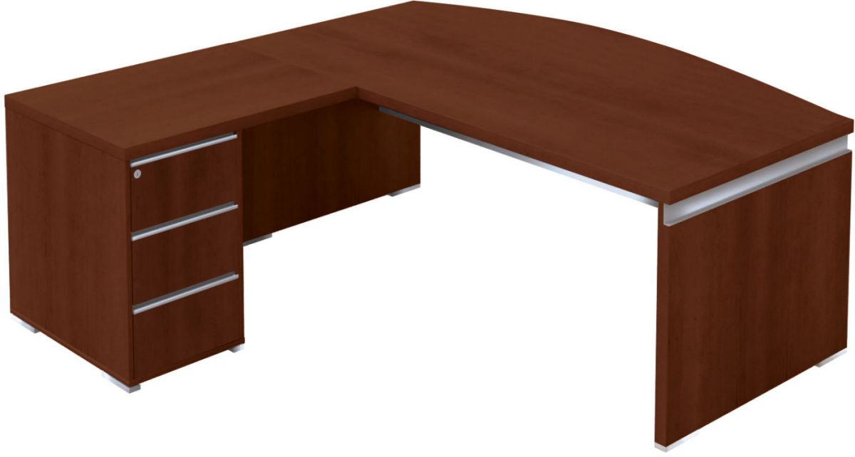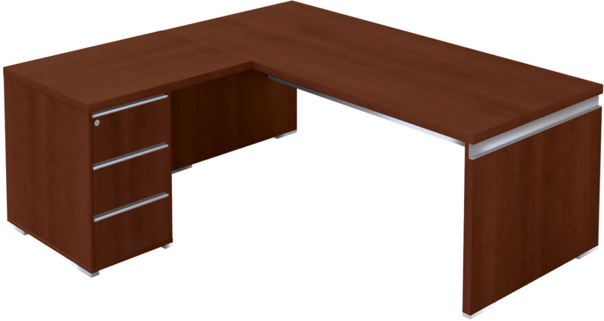 Conçue à partir de matériaux nobles, Master offre un cadre de travail élégant grâce à ses plateaux ébénisterie de forte épaisseur. Les finitions métalliques gris aluminium lui confèrent finesse et raffinement