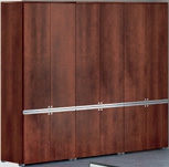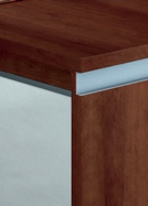 Pour apporter un maximum de confort au manager, les caissons et armoires Master sont dotés de poignées encastrées gris aluminium, assorties aux incrustations métalliques des bureaux.