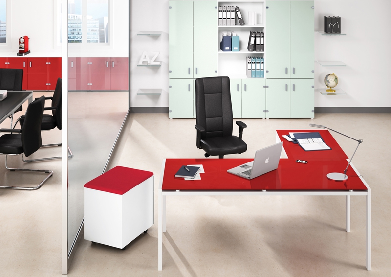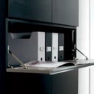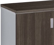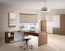Les nombreux compléments d’Oxford apportent une solution complète et personnalisable au poste de travail : retour porteur ou suspendu, caisson ou retour mobiles, rangement Déco. Rangement harmonieux sans poignée grâce au système push&pull et au fil du bois à l’horizontal sur les façades ébénisterie.