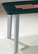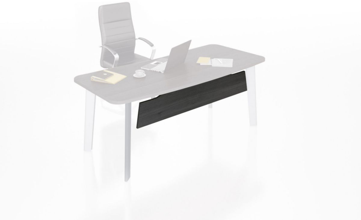 - Piétements panneaux mélamine avec un retour asymétrique côté visiteur.