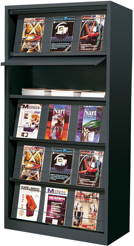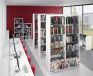 - 5 tablettes inclinées de présentation + 5 tablettes fixes de stockage.