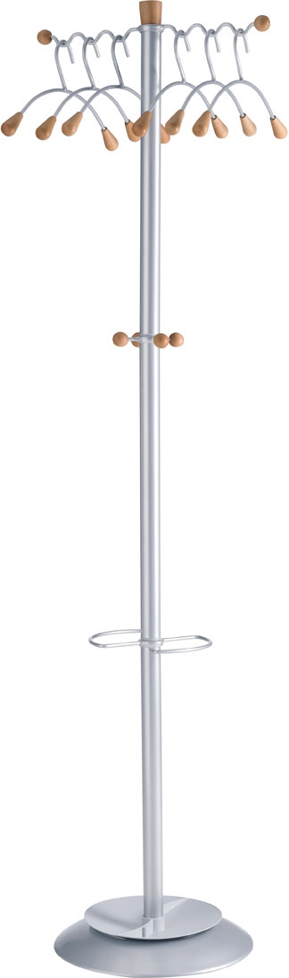 - 6 patères oblongues en hêtre verni et porte-parapluies intégré.