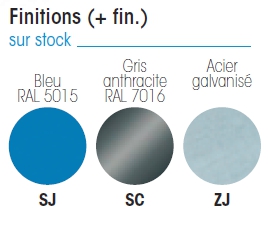 - 2 types de tablettes : métallique (fixation par taquets à vis) ép.10/10 avec repli de tôle sur la partie arrière ou mélamine (fixation par excentrique) ép. 25 mm, chants droits ABS 2 mm.