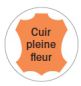 - Cuir pleine fleur sur le devant et similicuir classé non feu à l’arrière du dossier.