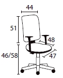 - Mécanisme synchrone avec translation d’assise intégrée (pour l’assise ergonomique uniquement), réglable en intensité et blocable en 5 positions.