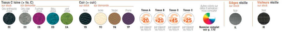 - Mécanisme synchrone réglable en intensité et blocable en 4 positions pour assise standard et 5 positions pour assise ergonomique.