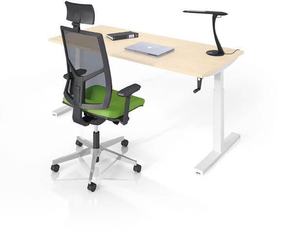 La manivelle se positionne à gauche ou à droite sous le plan de travail. Manivelle extractible pour le réglage.