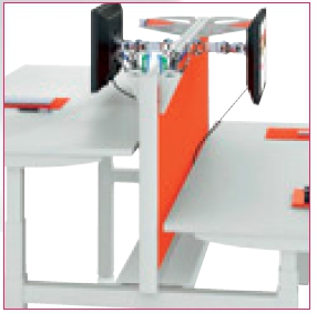 Réglage individuel des plans de travail par système motorisé de 62 à 128 cm.