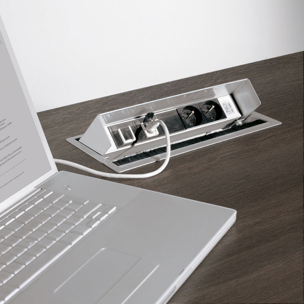 Des boîtiers prises pivotants encastrables sont disponibles sur demande pour une connexion directe des outils multimédia.
